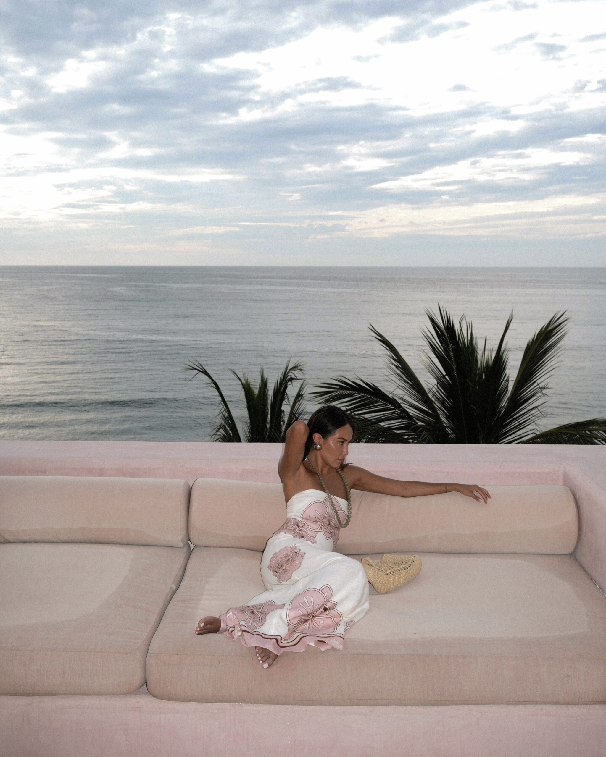 Aside from planning a vacation, nothing gets me more excited than curating my looks! Mexico just radiates inspiration, from the colors and textures to the laid-back energy and this gorgeous house fit the vibe perfectly. Naturally, I wanted my looks to reflect that. On this particular evening, we decided to dress up a little and have dinner at home, and nothing felt more fitting than slipping into this linen tube maxi dress.