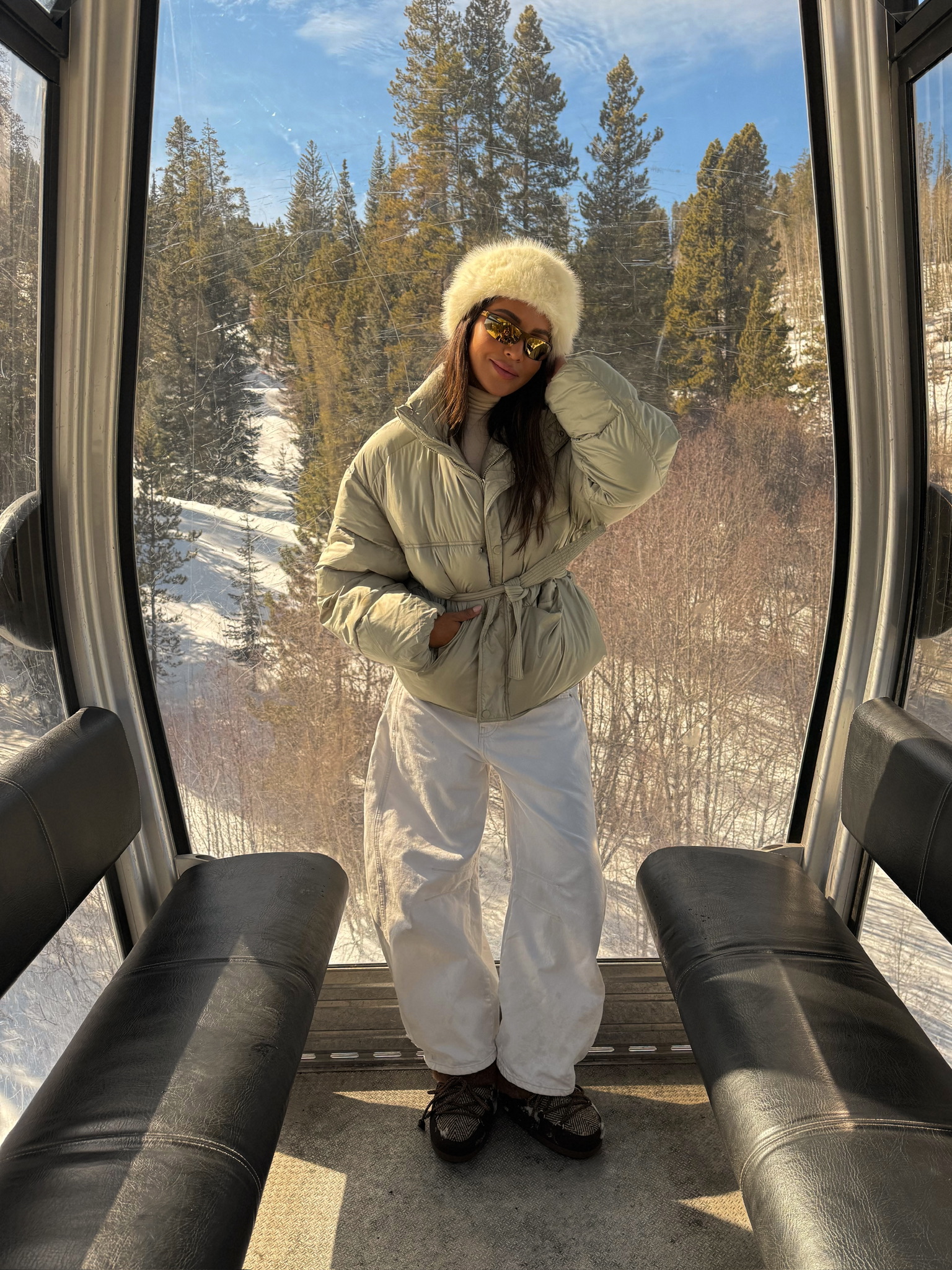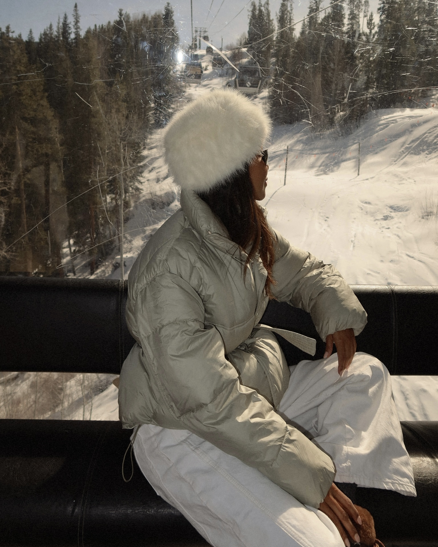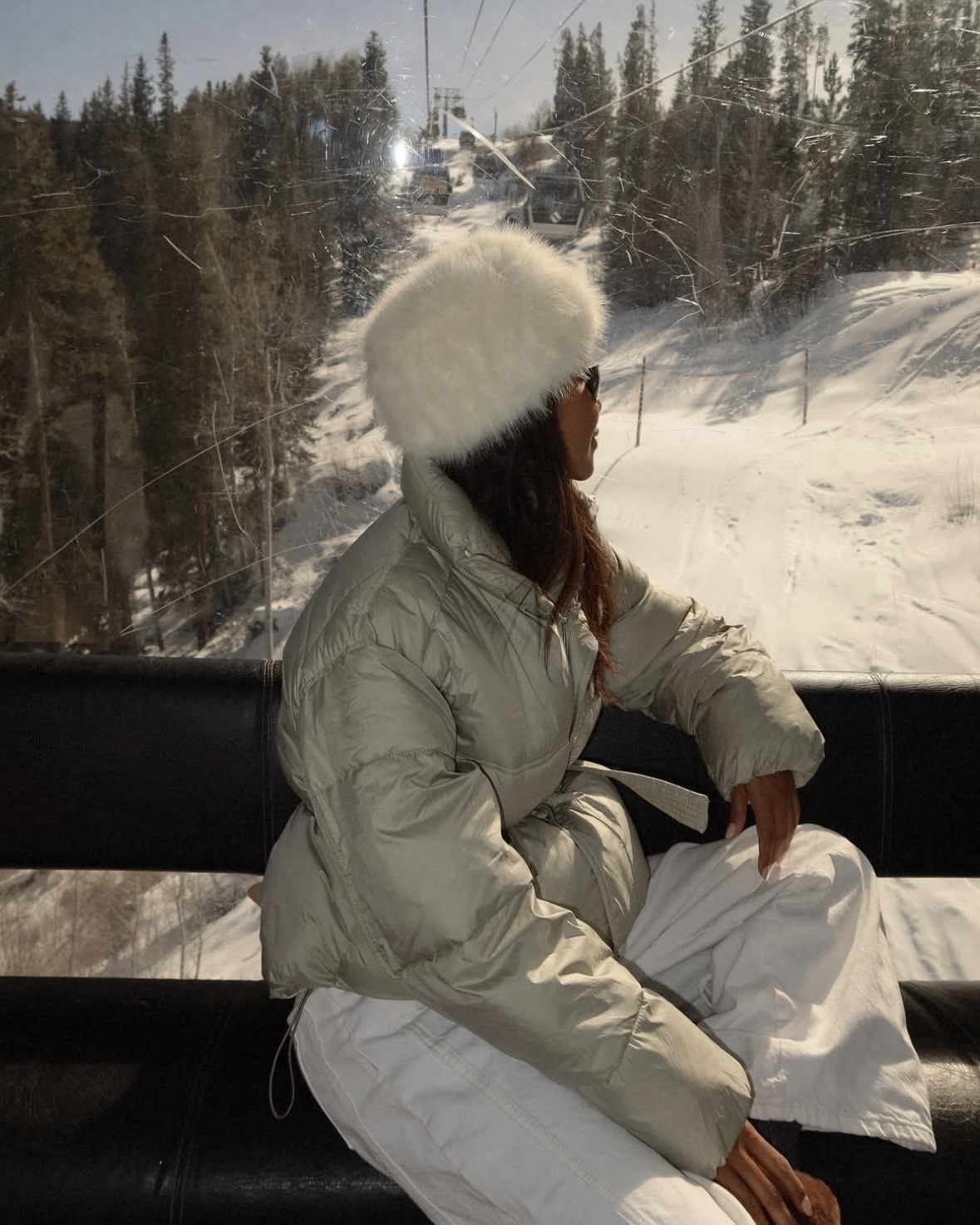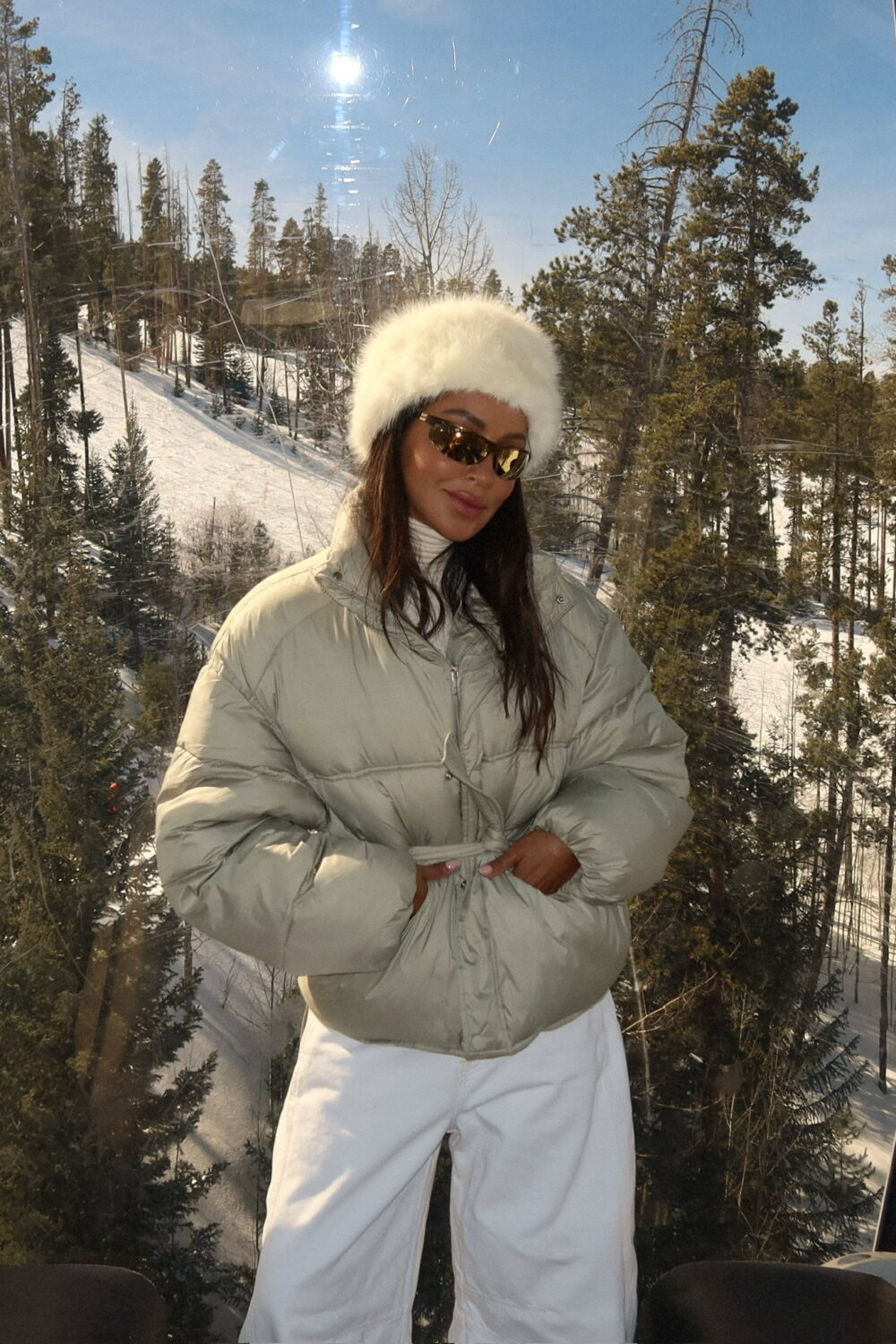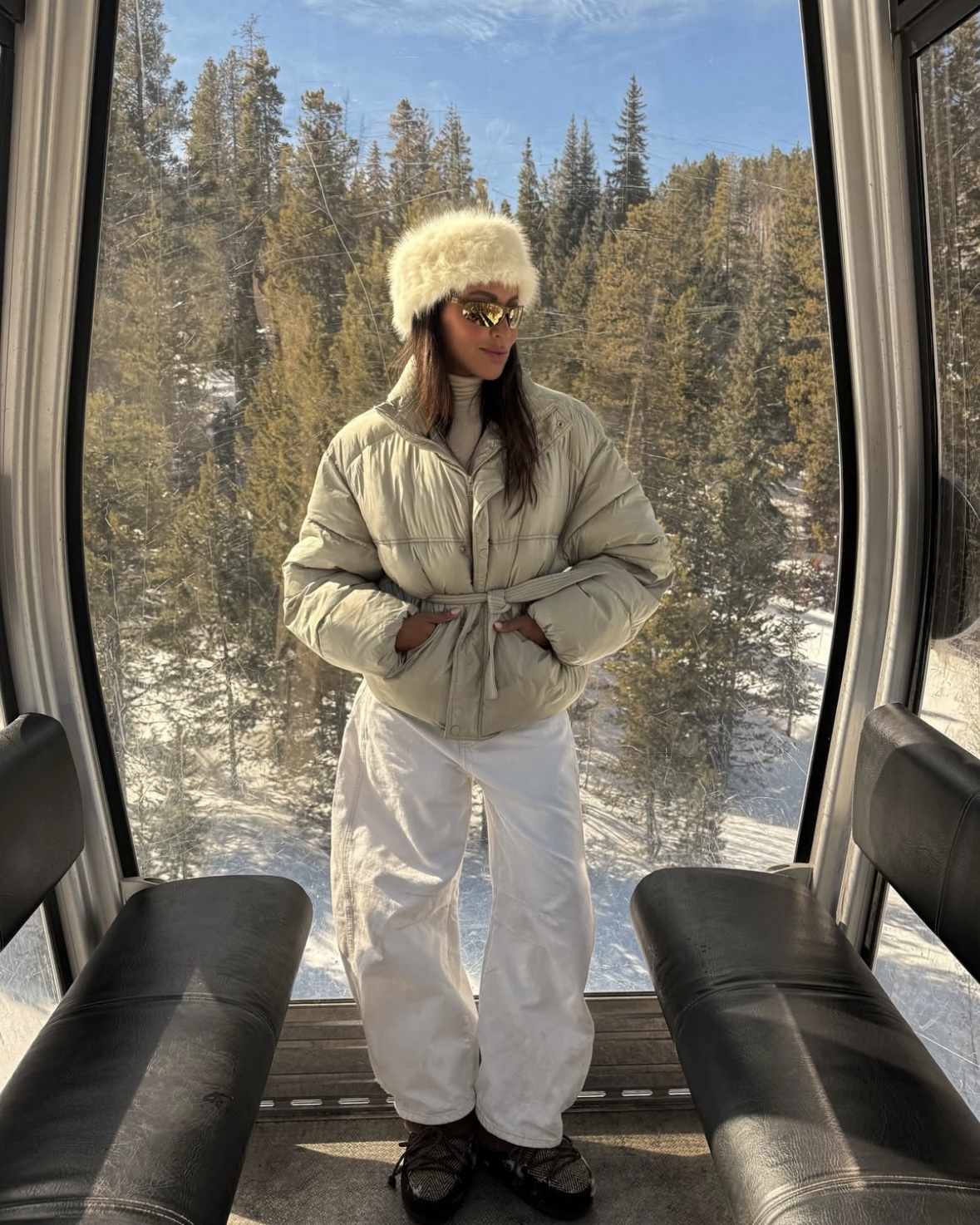 I love an all-white moment — especially on a snowy getaway. There’s just something about an all white look against snowy mountains and pine trees that feels so effortless and beautiful. It always reminds me of those vintage ski resort photos from the ’90s.