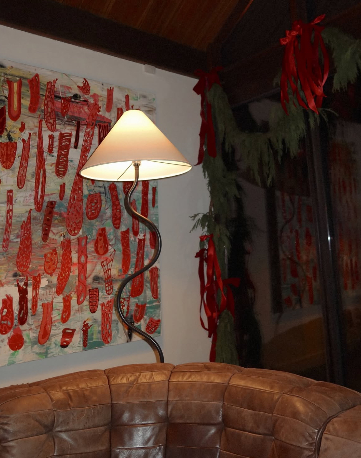 My brother is an artist, and I have one of his incredible pieces hanging in my living room. It looks so good next to my Christmas décor. This corner has become one of my favorites in my home—I look at it and instantly feel inspired.